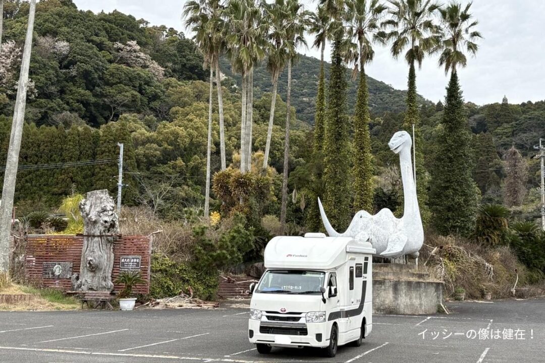 「イッシー」で有名なあの池田湖。以前立ち寄ったドライブインは閉店していましたが、イッシーの像はそのままちゃんと残っていて、思わずパシャリ。閉店したお店のすぐ近くには、おしゃれな雰囲気の新しいカフェ【ダンケンコーヒー いけだ湖パクス店】もできていました。朝食直後だったので今回は外から眺めるだけでしたが、次回はぜひ入ってみたいと思います。